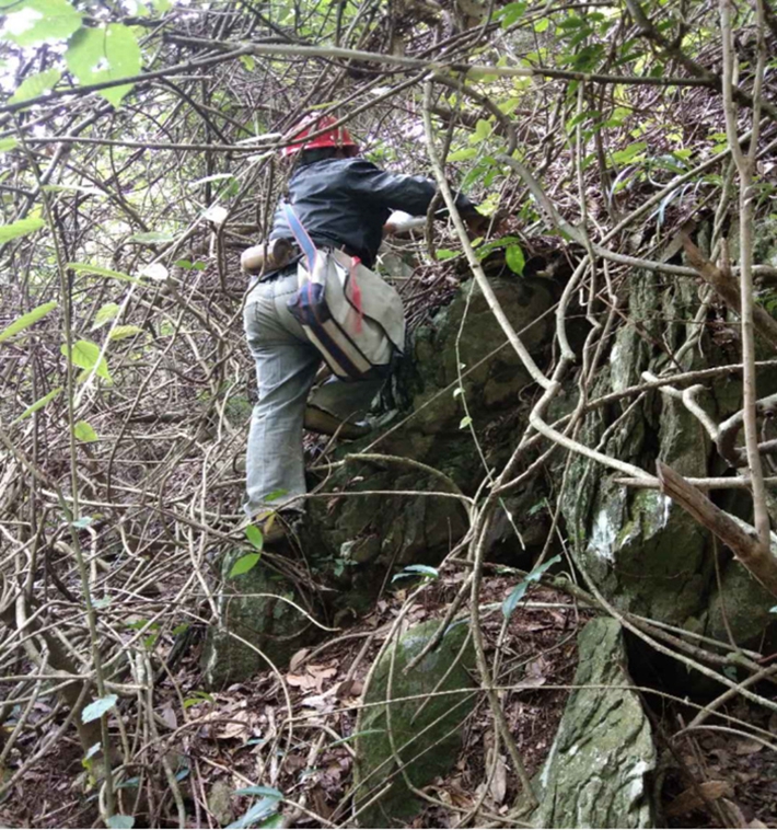 山路崎嶇、雜木叢生,蛇蟲鼠蟻繁多,并且時常在攀爬過程中會遇到松動的滾石砸下來,工作環(huán)境極其危險(xiǎn)。有時進(jìn)入大山深處,手機(jī)、對講機(jī)都不能發(fā)揮作用,而面對茫茫林海,東南西北都分辨不清,10月上旬的一天,他們3人圍繞山溝及山脊繞來繞去4個多小時又回到原地方,試想他們此時的惶恐、苦楚能與何人說!
