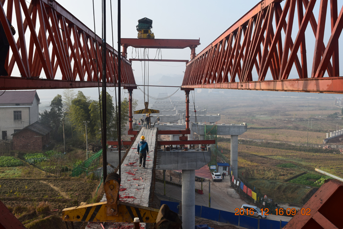 2016年12月15日上午11時整,隨著施工現(xiàn)場指揮人員準確到位的指揮和橋梁架設(shè)人員有條不紊地操作,益婁高速公路第11標段中陽大橋首片T梁穩(wěn)穩(wěn)落在左幅第1跨墩臺上,至此,宣告中陽大橋第一片梁架設(shè)成功,為整體施工向節(jié)點工期又邁進了堅實的一步。